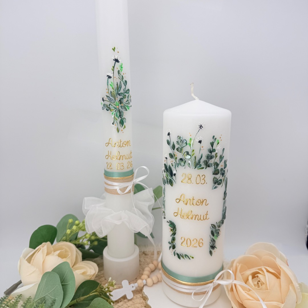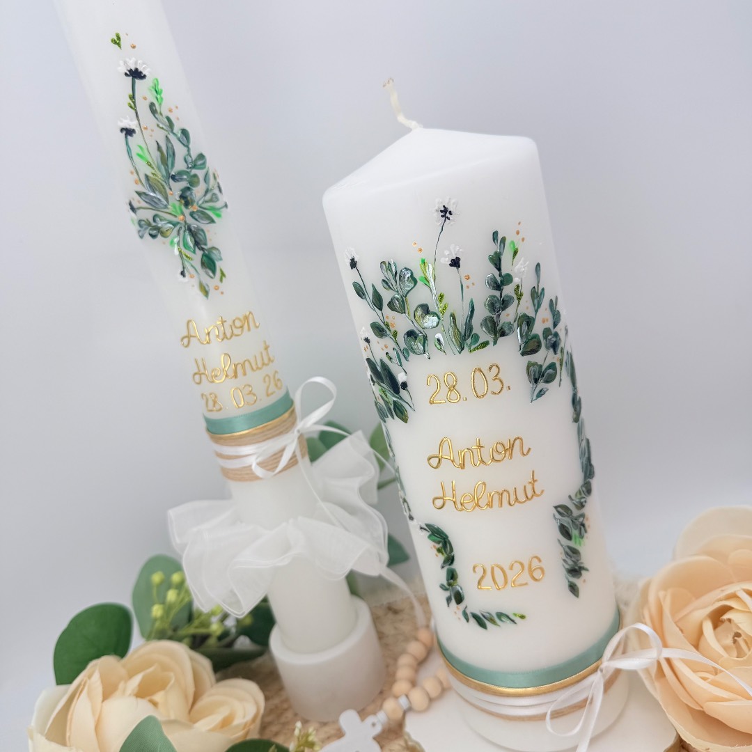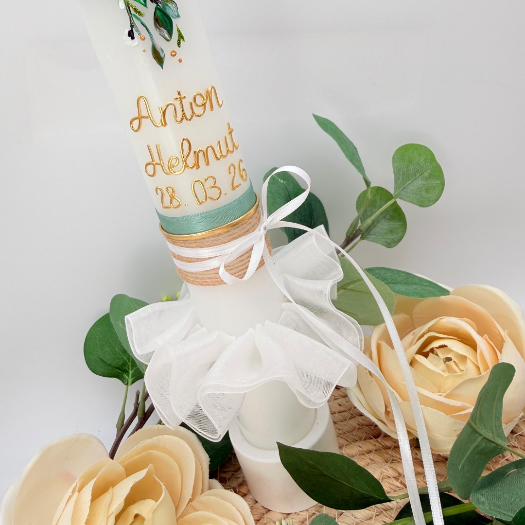 Außerdem kannst du die perfekt dazu passende Taufkerze für die Taufe deines Lieblings gleich hier mitbestellen. Und natürlich können wir auch farblich passende Gastgeschenkskerzen für dich gestalten.